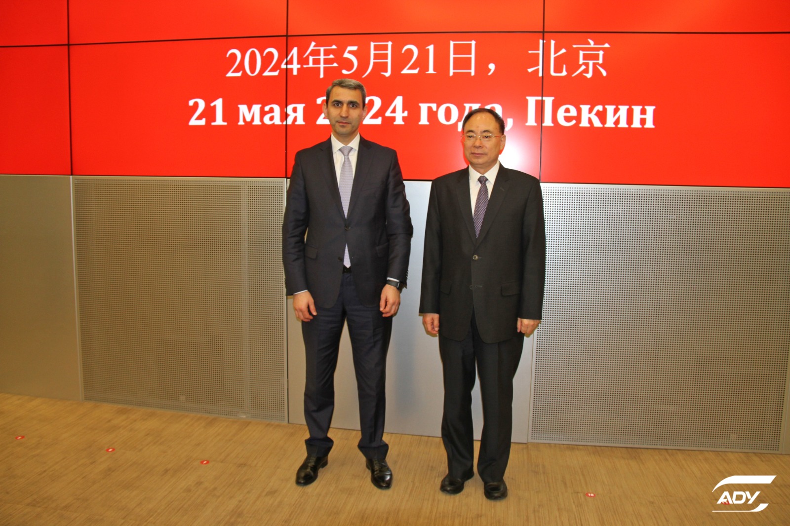 Çin Xalq Respublikasında rəsmi səfərdə olan “Azərbaycan Dəmir Yolları” QSC-nin (ADY) sədri Rövşən Rüstəmov “Çin Dəmir Yolları” dövlət korporasiya şirkətinin sədri cənab Liu Jenfanq ilə görüşüb.