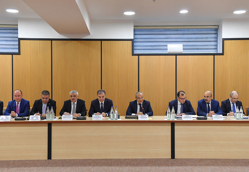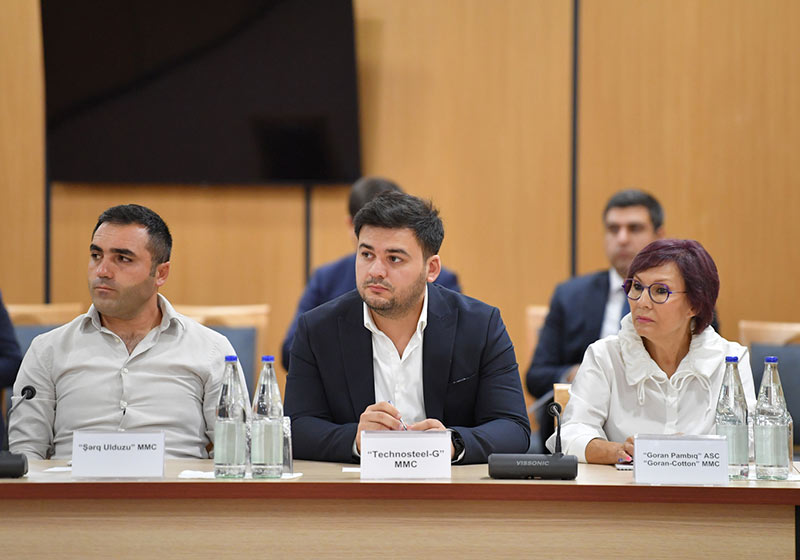Sahibkarlarla qeyri-neft sənayesindəki inkişafı davam etdirmək, istehsal və ixracı artırmaq barədə fikir mübadiləsi aparılıb. İş adamları ilə xammalın keyfiyyəti, investisiya təşviqi, bank-maliyyə hesablaşmaları, daxili bazarın qorunması, kommunal xidmətlərdə differensial tariflər, dövlət satınalmaları, kredit resurslarına çıxış, ixtisaslı kadr potensialı kimi məsələlər müzakirə edilib.