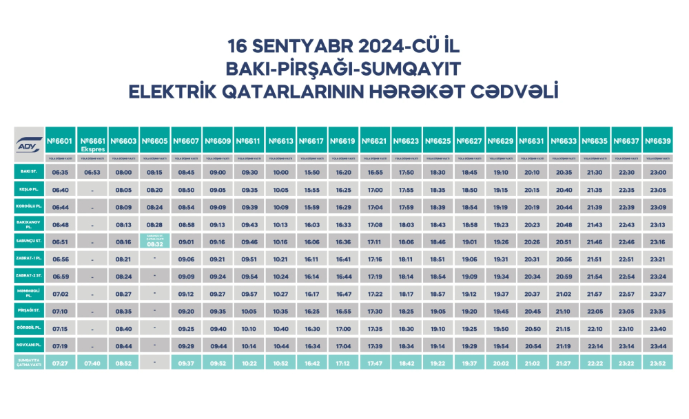 Yenilənmiş qrafikə uyğun olaraq, gün ərzində Bakı-Xırdalan-Sumqayıt marşrutu üzrə Bakıdan 13, Sumqayıtdan 11 reys, Bakı-Pirşağı-Sumqayıt marşrutu üzrə isə Bakıdan 20, Sumqayıtdan 22 reys təşkil ediləcək.