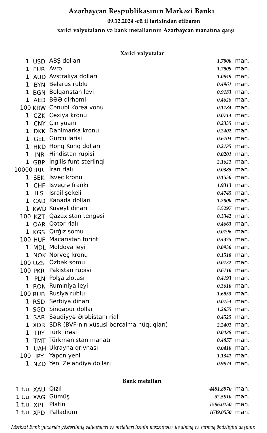 Dolların bazar ertəsi üçün rəsmi məzənnəsi müəyyən olunub