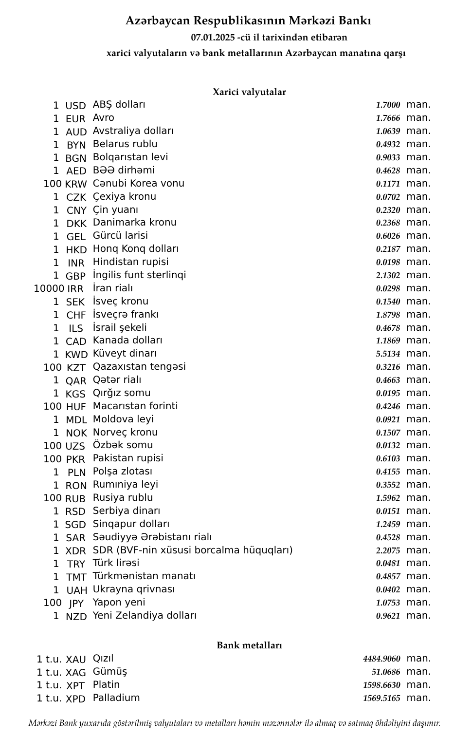 Dolların sabah üçün rəsmi məzənnəsi müəyyən olunub