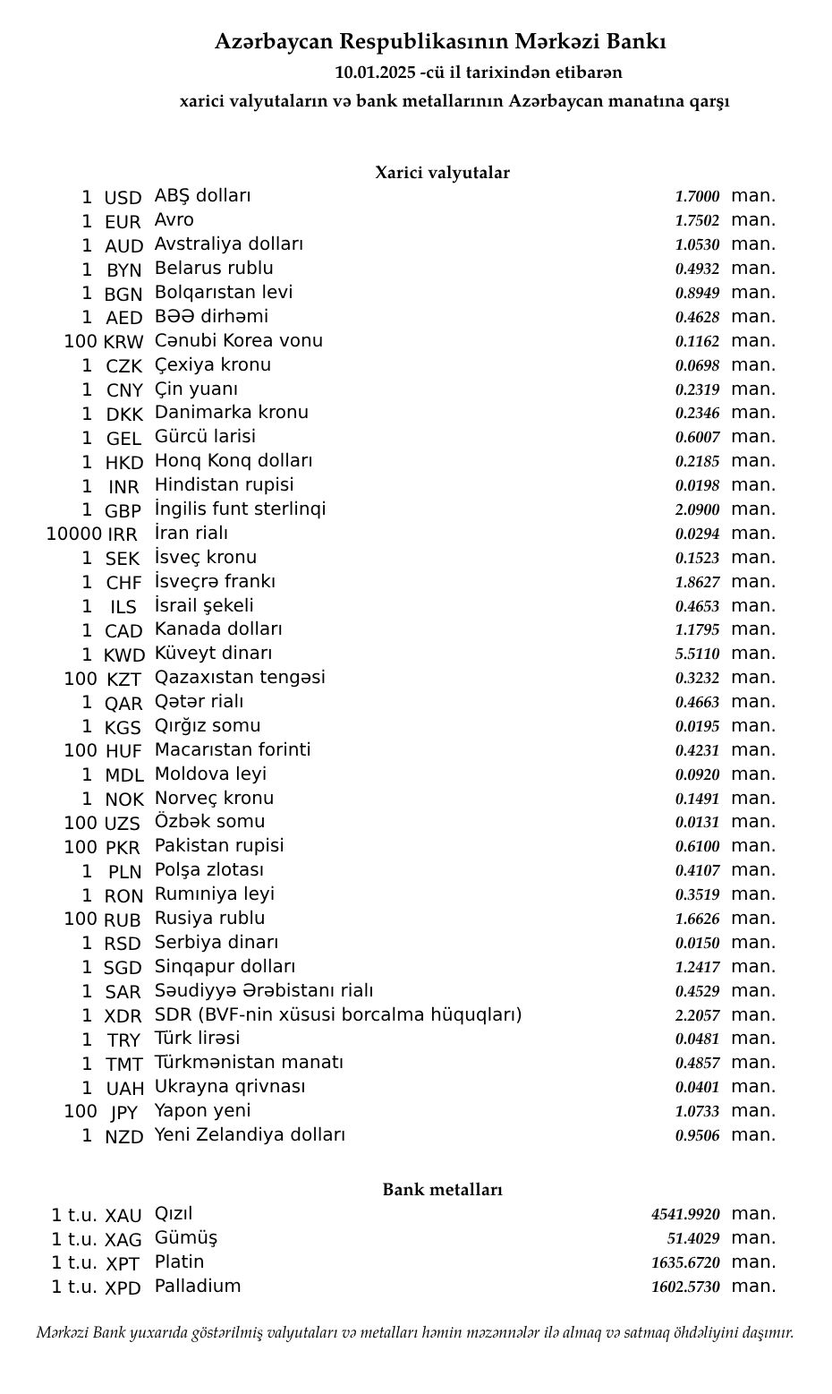 Dolların sabah üçün rəsmi məzənnəsi müəyyən olunub