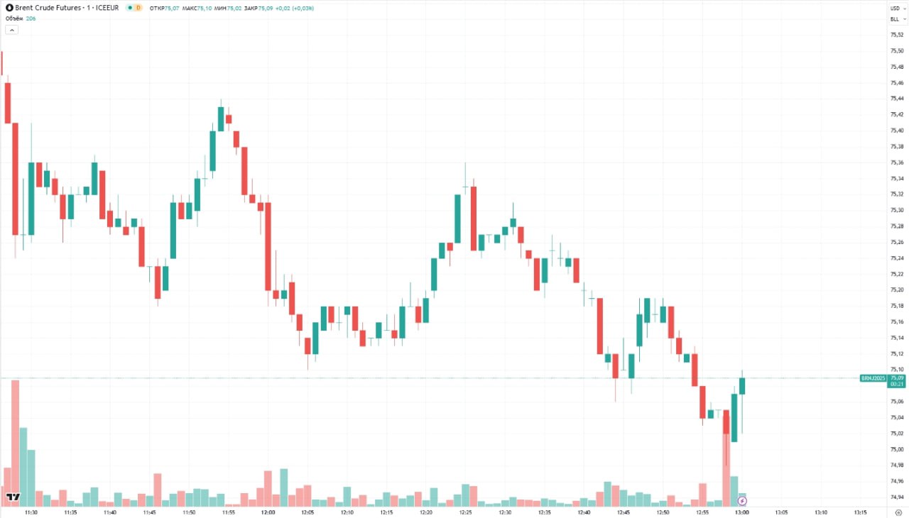 Bakı vaxtı ilə saat 13:58-də kotirovka 0,83% azalaraq bir barel üçün 74,98 dollar təşkil edib. Bakı vaxtı ilə saat 14:55-də isə Brent nefti 0,4% ucuzlaşma ilə 76,39 dollardan ticarət olunub.