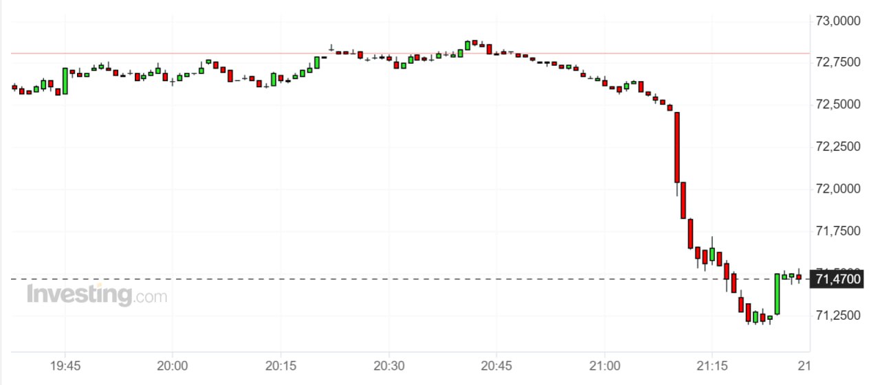 Marja xəbər verir ki, Bakı vaxtı ilə saat 23:23-də ICE birjasında Brent markalı neftin may fyuçerslərinin qiyməti 2,23% azalaraq 71,19 dollar olub.