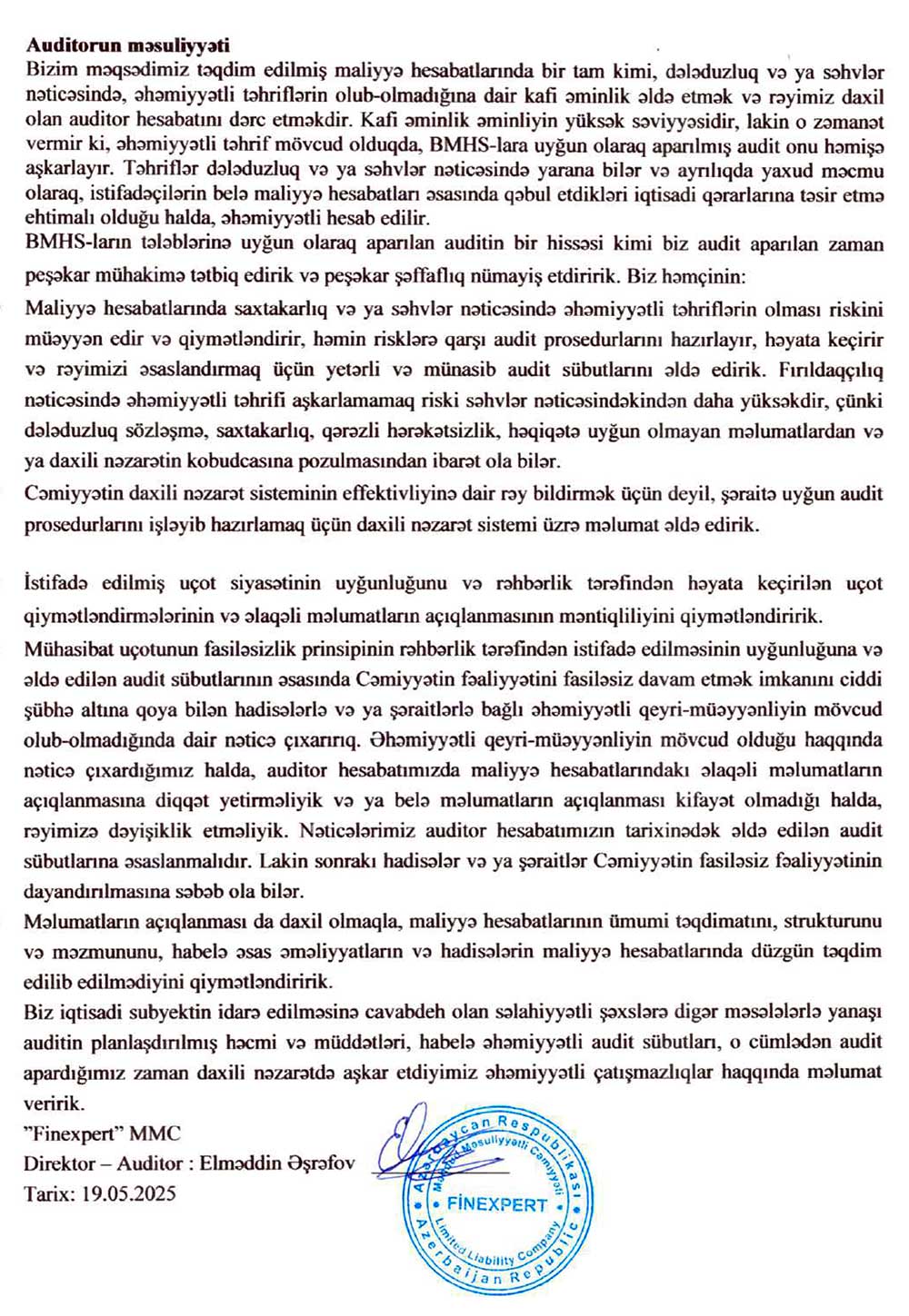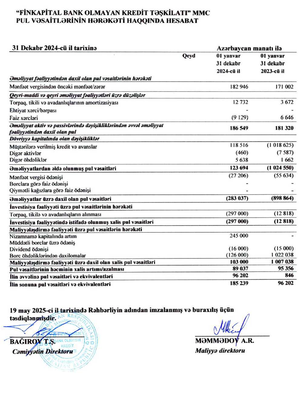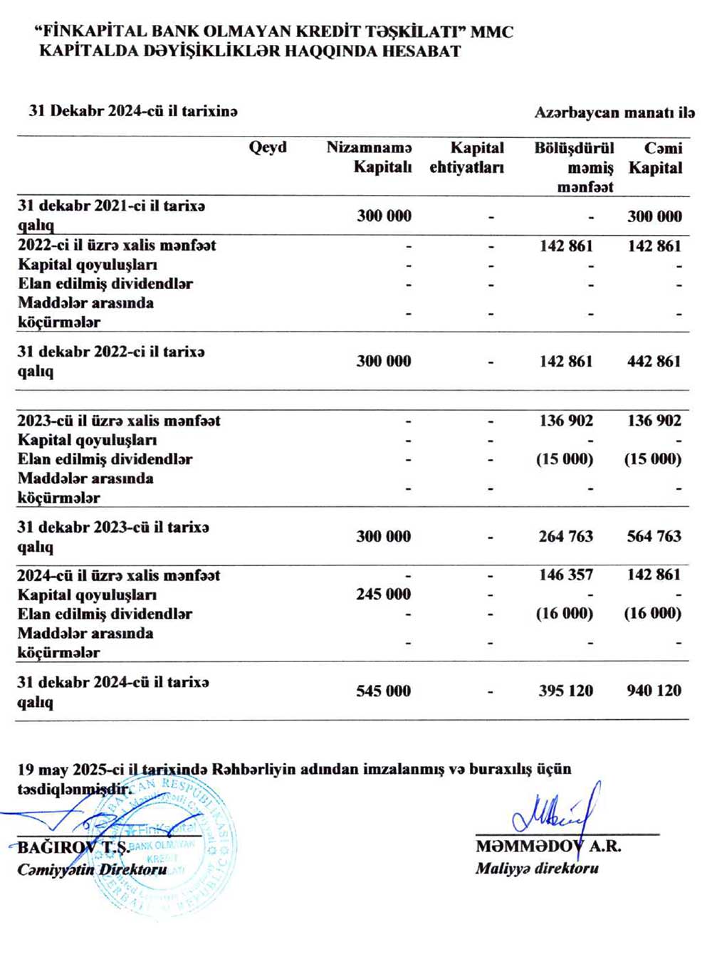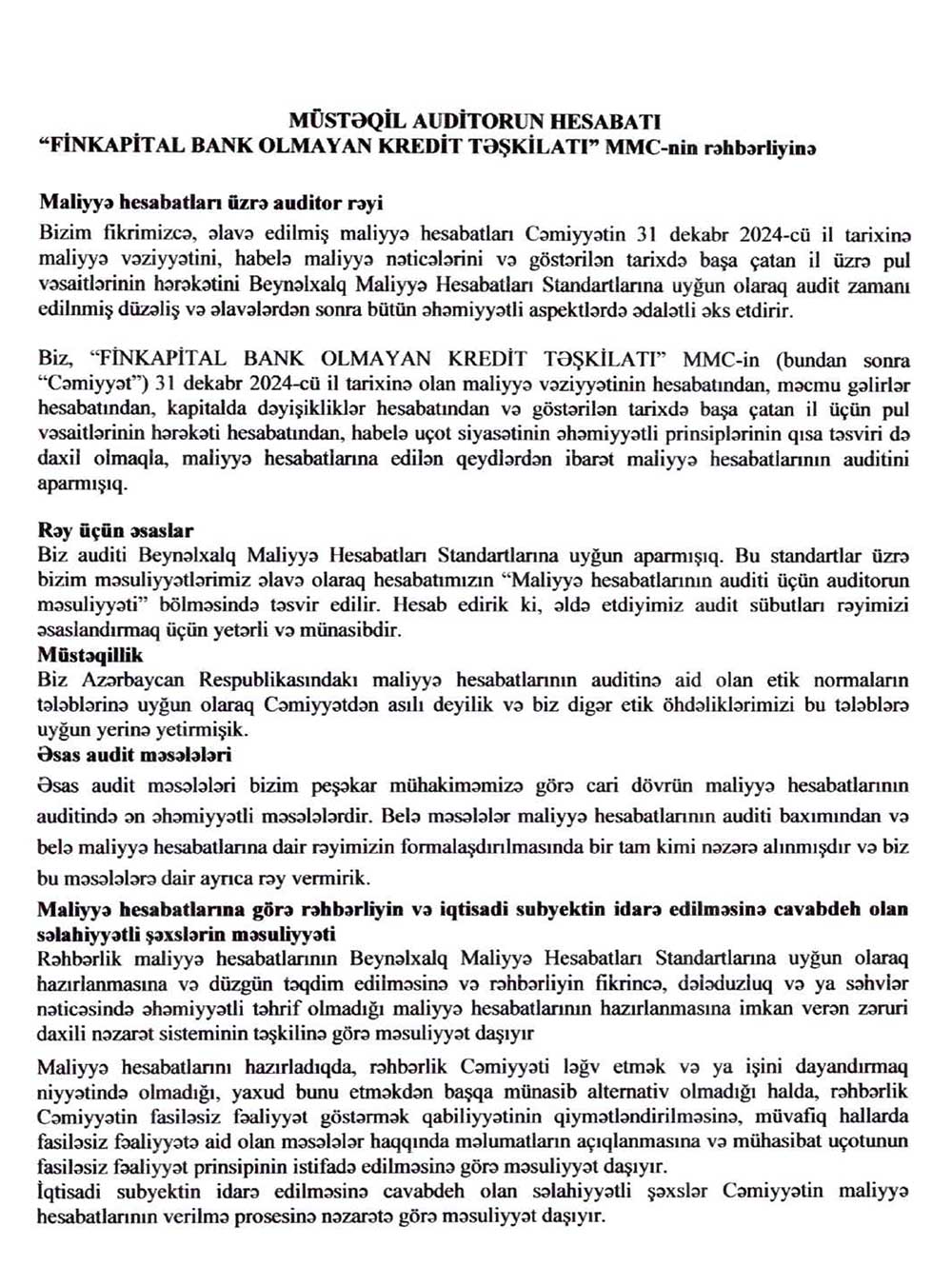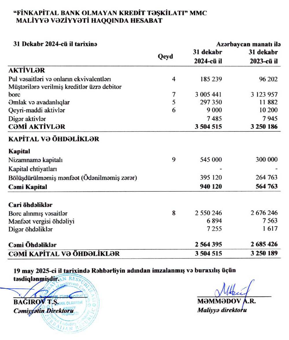 "Finkaptial Bank Olmayan Kredit Təşkilatı" MMC-nin 31 dekabr 2024-cü il tarixində bitmiş il üzrə maliyyə hesabatları – ƏTRAFLI