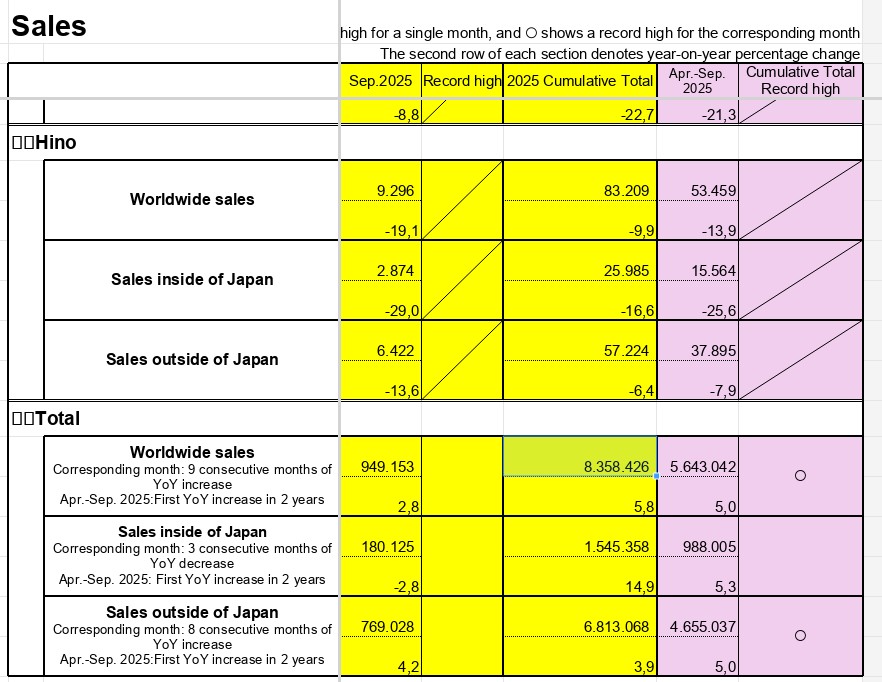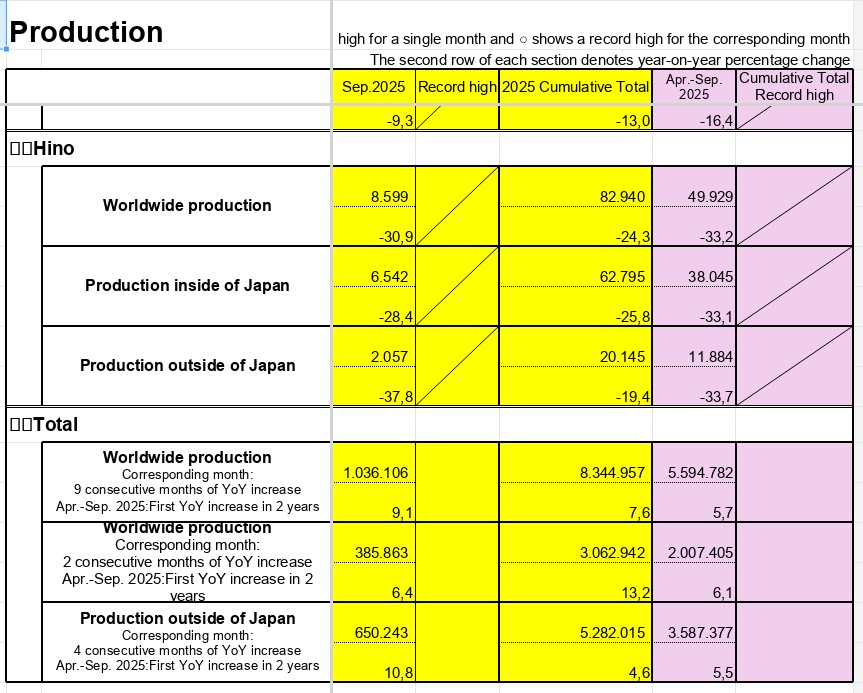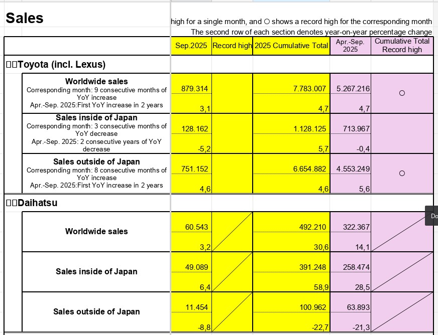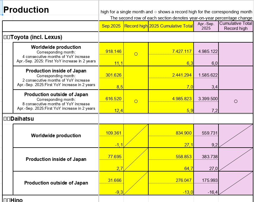 Marja.az Toyota-nın bazar ertəsi yaydığı statistikaya istinadən xəbər verir ki, “Daihatsu Motor Co.” və “Hino Motors Ltd.” törəmə şirkətləri də daxil olmaqla ümumi satışlar sentyabr ayında ötən ilin eyni dövrü ilə müqayisədə 3% artaraq 949 min 153 ədədə çatıb. İstehsal isə 9% artaraq 1 milyon 36 min 106 avtomobilə yüksəlib.