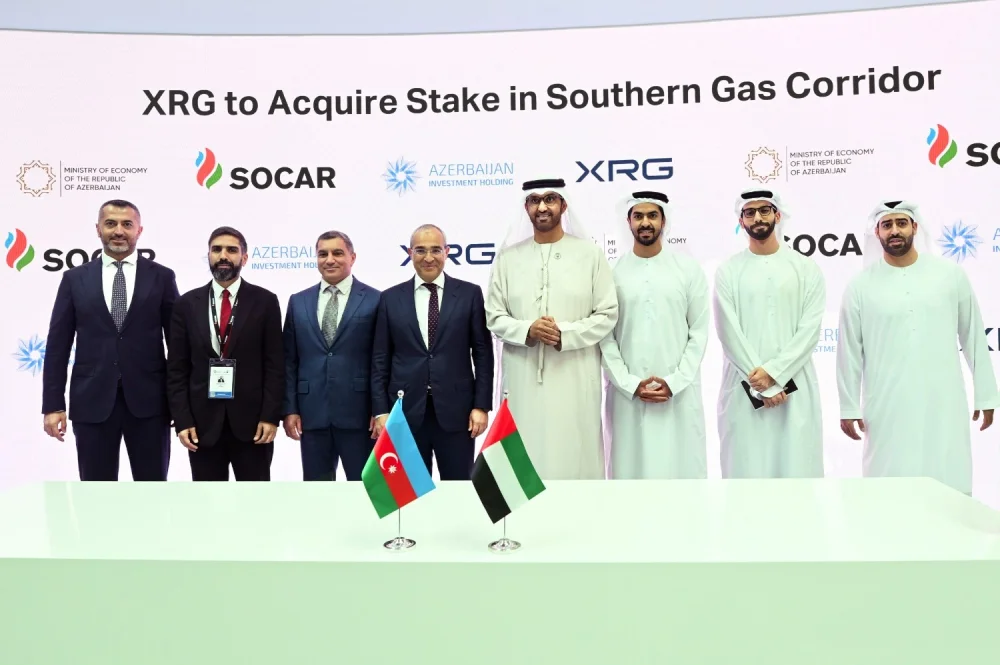 Birləşmiş Ərəb Əmirliklərində keçirilən ADIPEC sərgisi çərçivəsində ADNOC şirkətinin beynəlxalq enerji investisiya qolu olan XRG tərəfindən Azərbaycan Respublikası İqtisadiyyat Nazirliyindən “Cənub Qaz Dəhlizi” Qapalı Səhmdar Cəmiyyətində pay əldə olunmasına dair hüquqi öhdəlik yaratmayan Əsas Şərtlərlə bağlı Razılaşma imzalanıb.
