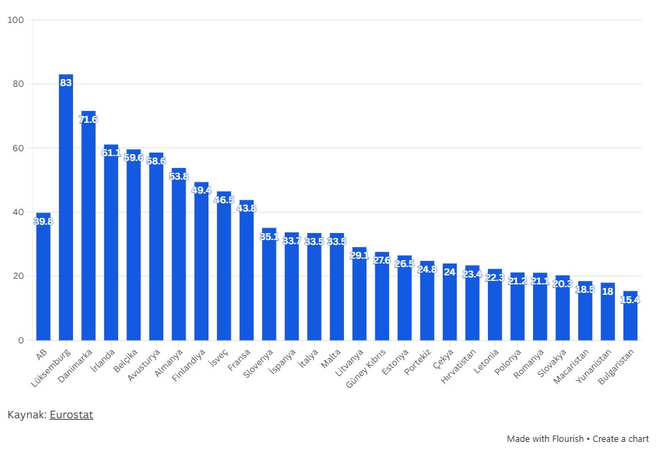 Aİ ölkələri arasında Lüksemburq illik 82 min 969 avro ilə (aylıq 6914 avro və ya 13 min 623 manat ) ən yüksək maaşın olduğu ölkədir. Onun ardınca Danimarka (71 min 565 avro) və İrlandiya (61 min 51 avro) gəlir.