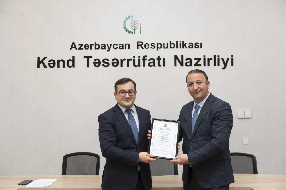 Kənd Təsərrüfatı Nazirliyi tabeliyində Aqrar Tədqiqatlar Mərkəzi tərəfindən yeni yaradılan daha bir aqroparka qeydiyyat şəhadətnaməsi təqdim olunub.