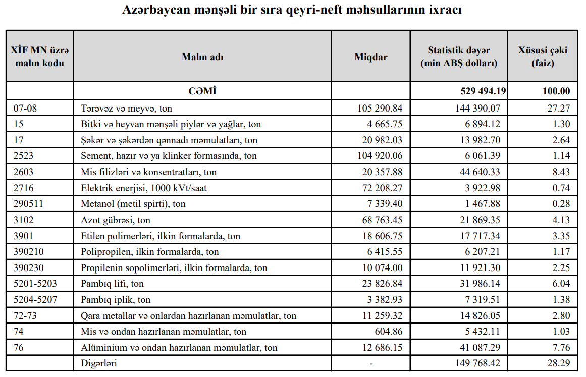 Azərbaycanın ən çox ixrac və idxal etdiyi mallar - YENİ SİYAHI
