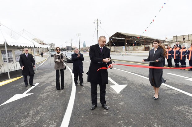 Prezident İlham Əliyev Xaqani Rüstəmov küçəsi, bu küçənin üzərində yerləşən dairə və dördçıxışlı piyada keçidinin rəmzi açılışını bildirən lenti kəsdi.