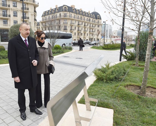 Prezident İlham Əliyev və birinci xanım Mehriban Əliyeva “Bakı Ağ Şəhər”in tikintisi və abadlığı başa çatmış Babək Qərb kvartalında, Mərkəzi Bulvar və Süleyman Vəzirov küçələrinin kəsişməsində yeni salınmış parkla da tanış oldular.