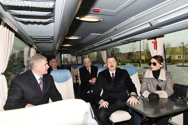 Sonra Prezident İlham Əliyev və xanımı Mehriban Əliyeva “Bakı Ağ Şəhər” ərazisində tikintisi və abadlığı başa çatmış məhəllələrlə tanış olmaq üçün avtobusla gəzintiyə çıxdılar.