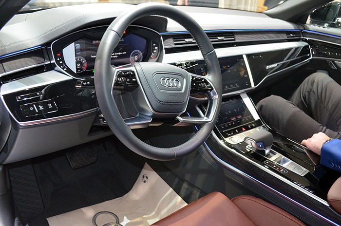 “Hər iki komplektasiya A8-in Long (uzun) versiyasıdır. Fərq təchizatdadadır. Biri 105 min avroya, digəri 135 min avroya təklif olunur. Daha bahalı versiyanın opsiyaları çoxdur - arxa faraları animasiyalıdır, ön faraları HD-Matrix-dir (işığı vurma məsafəsi daha çoxdur), arxa təkərləri də dönür, diskləri fərqlidir. A8 biznes-klass olduğundan, 135 min avroluq versiyada arxada əyləşən sərnişinlər üçün funksiyalar daha çoxdur. Masajdan tutmuş, audio-video sistemə qədər arxadakı “coystik” ilə idarə etmək mümkündür. Premium versiyada arxa sərnişin yeri 2 nəfər üçün, Lüks versiyada isə 3 nəfər üçün nəzərdə tutulub. Arxadakı planşetlər Android əməliyyat sistemi ilə cəhiz edilib. Arxada əyləşən “xozeyin” bu planşetlər ilə də sürücü tərəfindən idarə edilən bir çox funksiyaları idarə edə bilir. Hər iki versiyada panarama luk mövcuddur, təhlükəsizlik sistemləri yüksək səviyyədədir, akustikası mükəmməldir”.