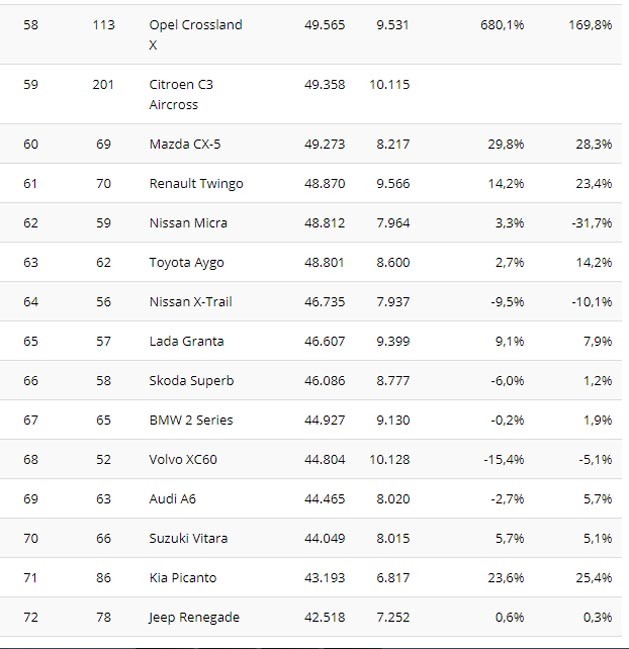"Marja" Azərbaycan Avtomobil İstehsalçıları Assosiasiyasının (ACEA) məlumatına istinadən xəbər verir ki, ilk beşliyə Volkswagen-nin 3 modeli daxildir.