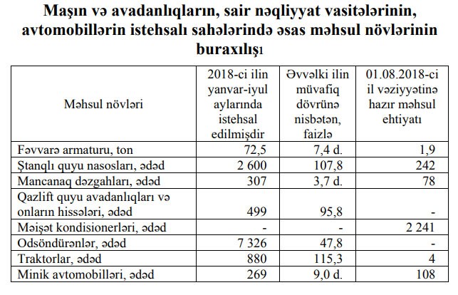 2018-ci ilin yanvar-iyul aylarında (7 ay) Azərbaycanda cəmi 269 ədəd minik avtomobili istehsal edilib (daha doğrusu yığılıb).