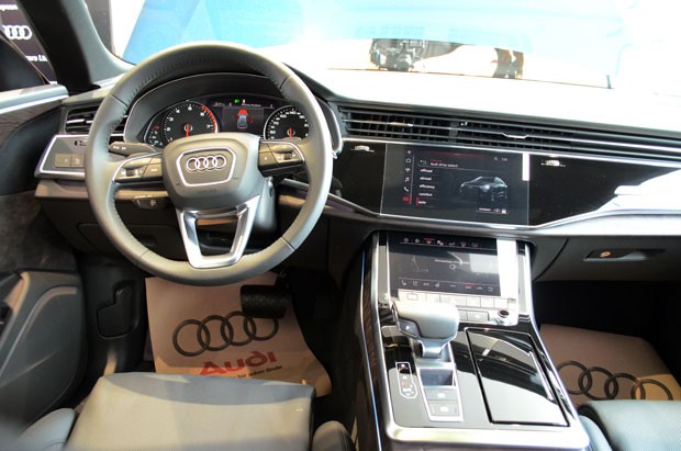 İnteryer son texnoloji cihazlar ilə təchiz edilib. Salon, sensorlu idarəetmə konsepsiyası ilə daha qəşəng görünür. Q8-in salonunda ilk diqqəti çəkən ölçüləri 10.1 və 8.6 düym olan iki ədəd sensorlu ekranlardır. Orta konsolun yuxarı tərəfində yer alan 10.1 düyümlük böyük ekran məlumat-əyləncə sistemi və naviqasiya funksiyalarına malikdir. Altında yer alan 8.6 düyümlük daha kiçik ölçülü ekran isə kondisioner və digər cihazları idarə etmək üçündür.
