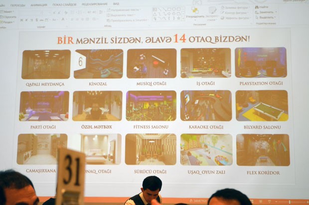 Təqdimatda “Hünər Qüllələri” şirkətinin əməkdaşı Nəsimi Paşayev “Flex House” sistemi barədə ətraflı məlumat verdi. O bildirdi ki, Azərbaycanda ilk dəfə “Hünər Qüllələri”ndə “Flex House” sistemi tətbiq ediləcəkdir. “Flex House” sistemi müştərilərinə bir evin işərisinə sığmayan xüsusi otaqlarda komfortlu xidmət sahələri təqdim edir. Belə ki “Hünər Qüllələri”ndən mənzil alan hər bir ailə müxtəlif 14 növ xidmət otağından istifadə edə biləcəkdir. “Flex House” sisteminin əsas məqsədi bir evə sığmayan xidmətləri bütün otaqları “qatlayaraq” mənzilinizə əlavə etməkdir. Otaqlar yalnız mənzil sahiblərinə veriləcək icazə vasitəsilə bronlaşdırılacaq. Bronlaşdırma prosesini mobil telefon vasitəsilə çox rahat həyata keçirmək mümkün olacaqdır.