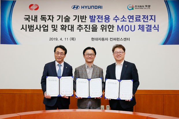 Aprel ayında imzalan ikinci müqavilə ilə Hyundai Motor Company şirkəti yerli bazarda fəaliyyət göstərən East-West Power (EWP) və Deokyang şirkətləri ilə hidrogendən elektrik alınması mövzusunda anlaşma memorandumu imzalamış oldu. Memorandum əsasında inşa ediləcək müəsisə hər biri 500Kvt olmaqla 2 ədəd Hyundai NEXO modelindəki kimi yanacaq elementləri ilə təchiz edilmiş moduldan ibarət olacaqdır. Müəsisə illik 8000MVT/saat elektrik enerjisi yaradaraq 2200 evi aylıq 300kVt/saat hesabı ilə təmin etməyi planlaşdırır. Xam mal olaraq istifadə ediləcək hidrogen yaxınlıqdakı neft-kimya kompleksinindən boru şəbəkəsi vasitəsilə nəql ediləcək. Bu isə öz növbəsində processin maya dəyərinin azaldılmasına xidmət edəcək.
