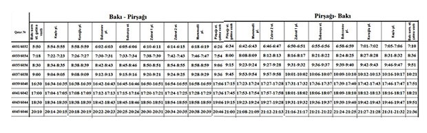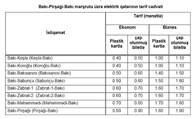 "Belə ki, Sabunçu-Pirşağı-Sabunçu sahəsində infrastrukturun əsaslı təmir işlərinin başa çatması ilə əlaqədar, bu istiqamətdə hərəkət edən elektrik qatarının marşrutu Pirşağı stansiyasına kimi uzadılır". Həmçinin qeyd edilib ki, hələlik gün ərzində Bakıdan Pirşağıya və Pirşağıdan Bakıya 8 qatar hərəkətdə olacaq: "Tariflər və qatarların hərəkət qrafiki ilə aşağıdakı cədvəllərdə tanış ola bilərsiniz".