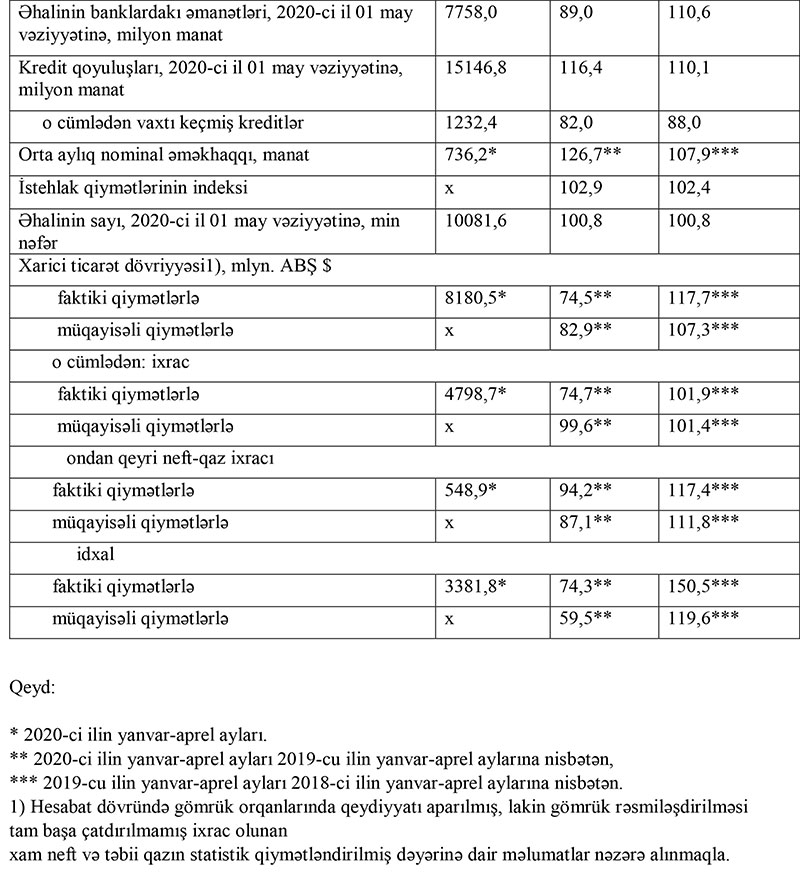 Dövlət Statistika Komitəsi 2020-ci ilin yanvar-may aylarında ölkənin iqtisadi və sosial inkişafının makroiqtisadi göstəricilərini açıqlayıb.