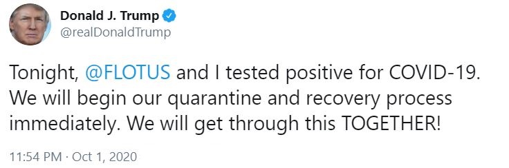 ABŞ Prezidenti Donald Tramp, özü ilə bərabər həyat yoldaşı Melania Trampın Covid-19 testinin müsbət çıxdığını (koronavirusa yoluxduqlarını) açıqlamasının ardından neft qiymətləri düşür.