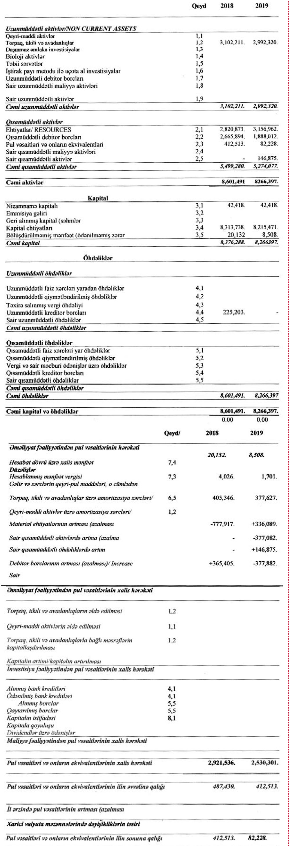 Marja şirkətin maliyyə hesabartına istinadən xəbər verir ki, 2018-ci ildə 2 milyon 921 min manat olmuş gəlirlər (satış) 2019-cu ildə 2 milyon 530 min manata geriləyib.