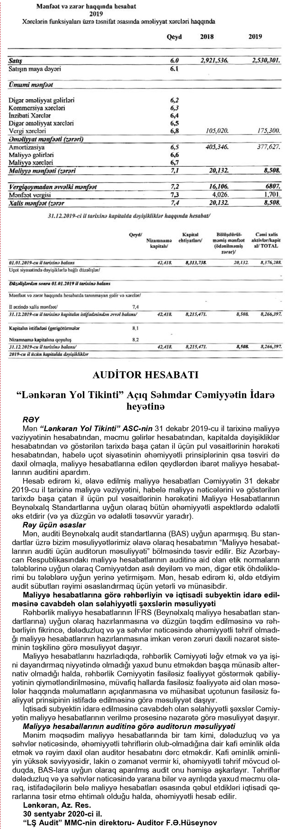 “Lənkəran Yol Tikinti” ASC 2019-cu ili 8 min 508 manat xalis mənfəət ilə başa vurub. 2018-ci illə müqayisədə şirkətin xalis mənfəəti 2,4 dəfə azalıb. “Lənkəran Yol Tikinti” 2018-ci ili 20 min 132 manat xalis mənfəət ilə bağlamışdı.