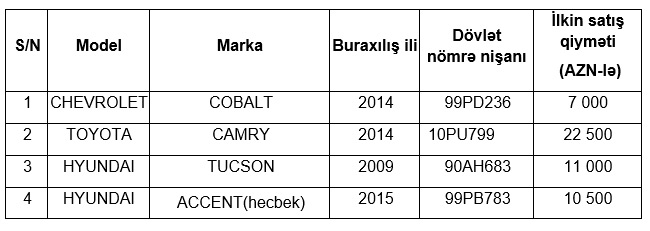 Sığorta şirkətinin daha 4 avtomobili satışa çıxarıldı