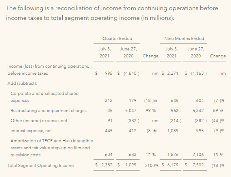 Gəlirlərin böyük hissəsi - 12,68 milyard dolları Disneyin Media və Əyləncə bölməsindən, 4,34 milyard dolları isə Disney Parklarından və digər məhsullardan daxil olub.