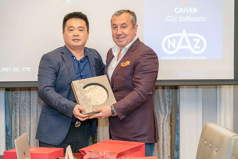 “Cahan” Holdinq KŞİ-nin Mətbut Xidmətinin yaydığı məlumatda bildirilir ki, Dünyanın nəhəng avtomobil müəssisələrinin müxtəliftəyinatlı və modellərdəki nümunələrinin muxtar respublikada istehsal olunması, Naxçıvanda maşınqayırma sənayesinin güclənməsinə, eləcə də iqtisadiyyatın inkişafına öz töhfəsini verir. Zavodun qarşısında yeni hədəflər var. Avtomobil sektorunda olan inkişafla ayaqlaşmaq məqsədilə günümüzdə tələbatı artmaqda olan elektrikli avtomobillərin istehsalına başlanılacaq. Yüksək keyfiyyətli elektrikli avtomobillərin istehsalı üçün ilkin addımlar artıq atılıb, layihə üzərində işlərin təməli qoyulub. Belə ki, iyunun 13-də Birləşmiş Ərəb Əmirliyinin Dubay şəhərində, Habtoor Palace otelində “Cahan” Holdinqin KŞİ-nin Prezidenti Vüqar Abbasov və onu müşayiət edən nümayəndə heyəti ilə Çin Lifan şirkətinin Baş icraçı direktoru Danfer Deng və Çin Lifan şirkətinin Regional direktoru Çan Kayın nümayəndə heyəti arasında görüş keçirilmişdir.
