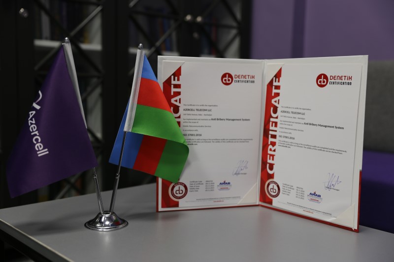 Şirkətin yaydığı məlumatda bildirilir ki, ABŞ-ın ən böyük akkreditasiya qurumu olan ANAB (ANSI National Accreditation Board) tərəfindən akkreditə olunmuş Türkiyənin Denetik Uluslararası Belgelendirme ve Gözetim Hizmetleri şirkətinin 27-28 oktyabr 2022-ci il ərzində keçirdiyi sertifikatlaşdırma auditi Azercell-in antikorrupsiya proqramının bütün tələblərə cavab verdiyini bir daha təsdiq edib.