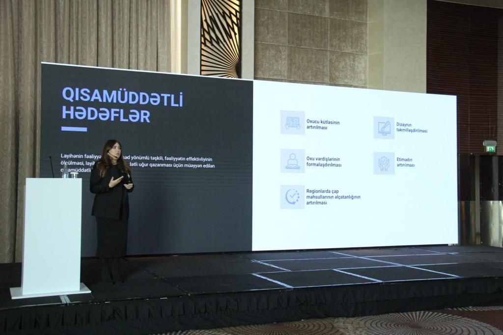 Daha sonra Medianın İnkişafı Agentliyinin Media dəstək layihələri şöbəsinin müdiri Ləman İsgəndərova platformanın üstünlüklərini, əhatə dairəsini, məqsədlərini əks etdirən təqdimatla çıxış edib.