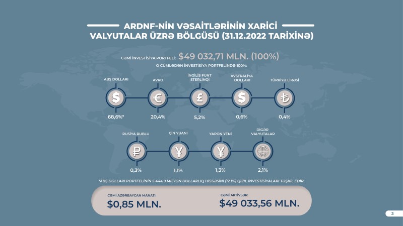 31 Dekabr 2022-ci il tarixində Fondun investisiya portfeli 49 milyard 33 milyon dollar təşkil edib.