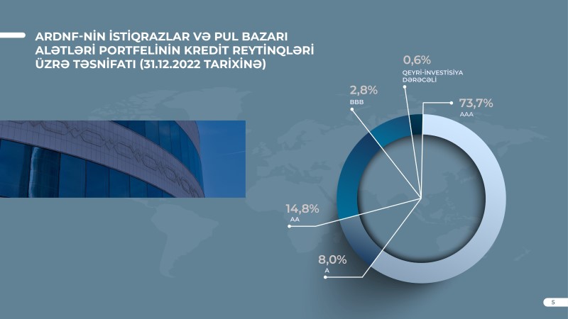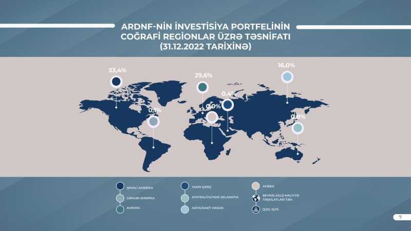 "2022 il ərzində ARDNF-nin aktivlərinin bazar dəyərində qısamüddətli qiymət dəyişkənliklərindən yaranan 2 milyard 461.3 milyon ABŞ dolları azalma müşahidə olunmuşdur. Valyuta məzənnələrinin dəyişməsindən yaranan fərq ilə bağlı ARDNF-nin büdcədənkənar xərcləri 878,5 milyon ABŞ dolları təşkil etmişdir",- ARDNF bildirib.