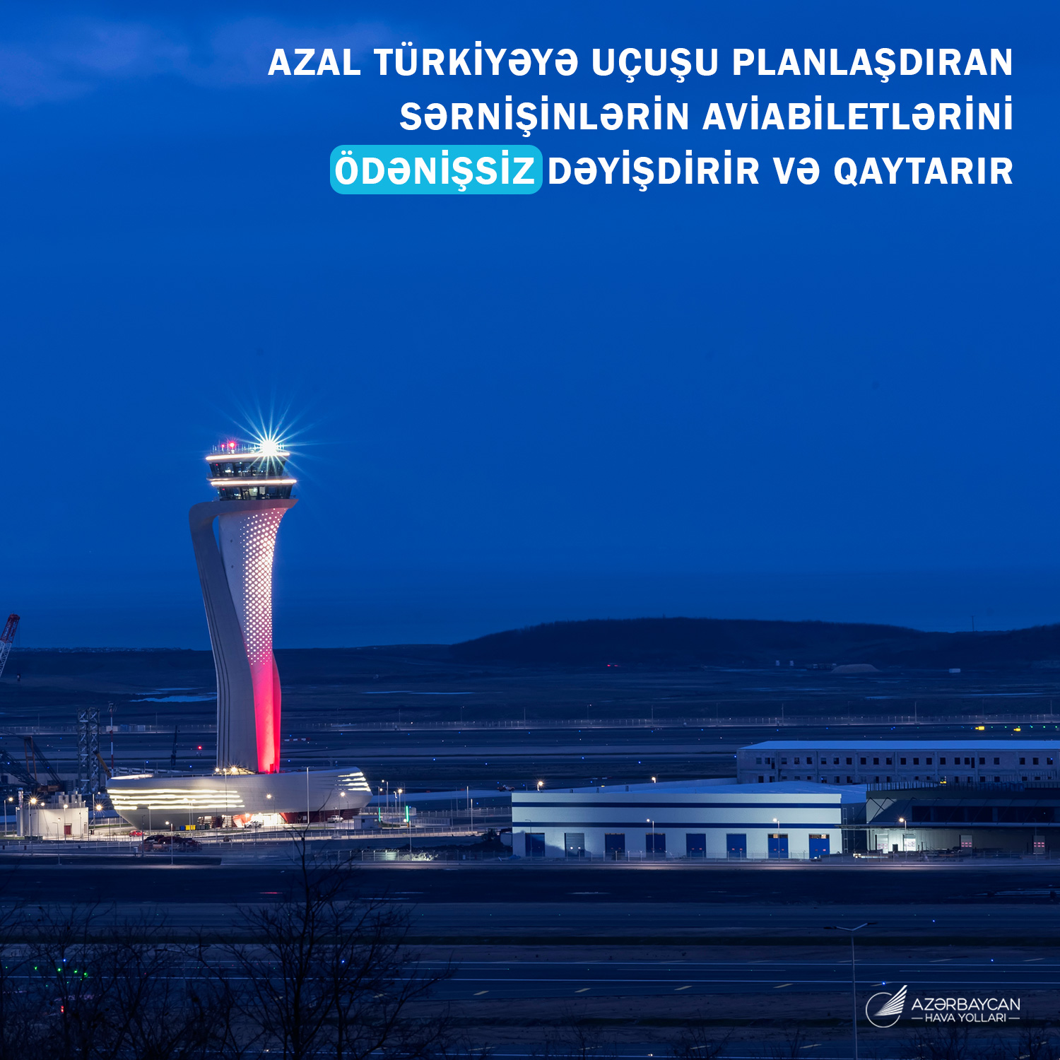 "Hörmətli sərnişinlər, xatırladırıq ki, qardaş ölkə Türkiyədə baş vermiş zəlzələ nəticəsində aviaşirkətimizin xidmətlərindən yararlana bilməyənlər aviabiletləri geri qaytara və ya ödənişsiz dəyişə bilərlər",- AZAL-ın məlumatında bildirilir.